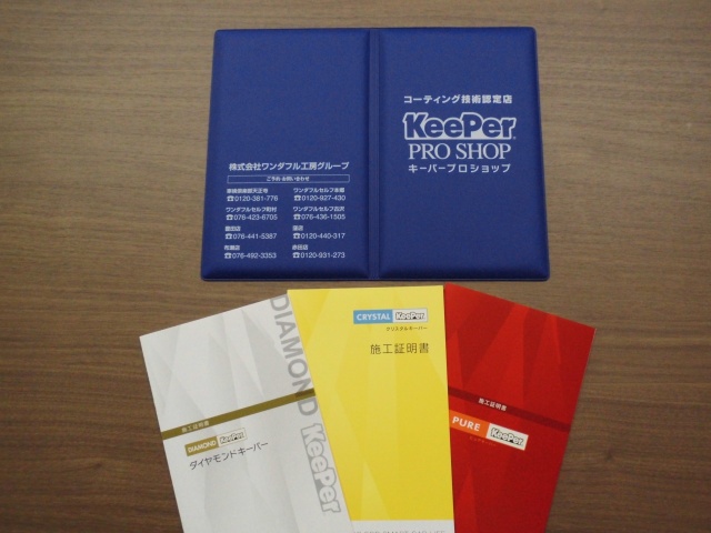 キーパープロショップならどこのお店でも通用する施工証明書です。