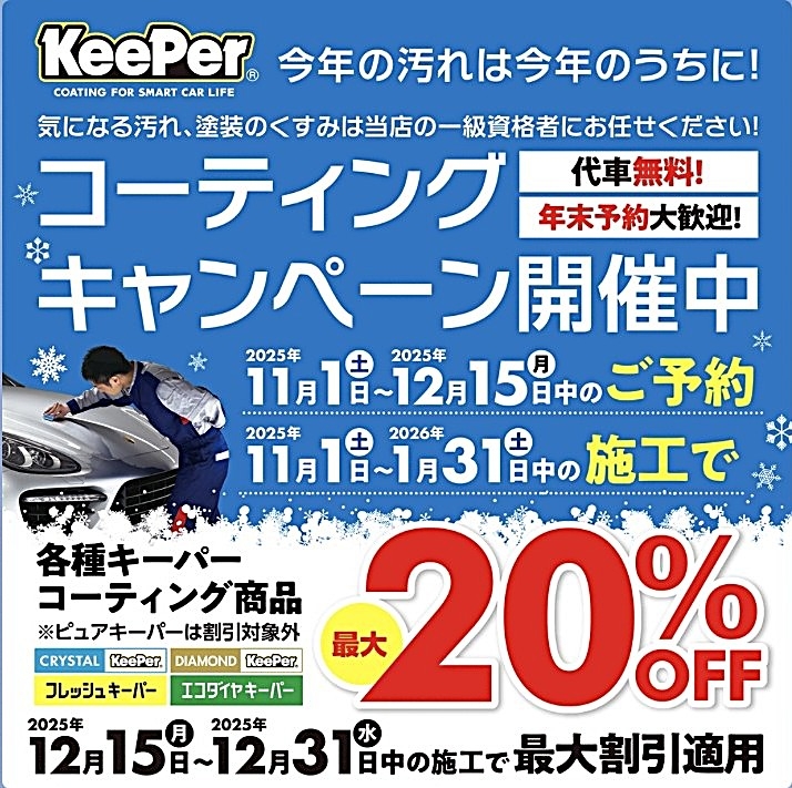 今年の汚れは今年のうちに!コーティングキャンペーン開催中!