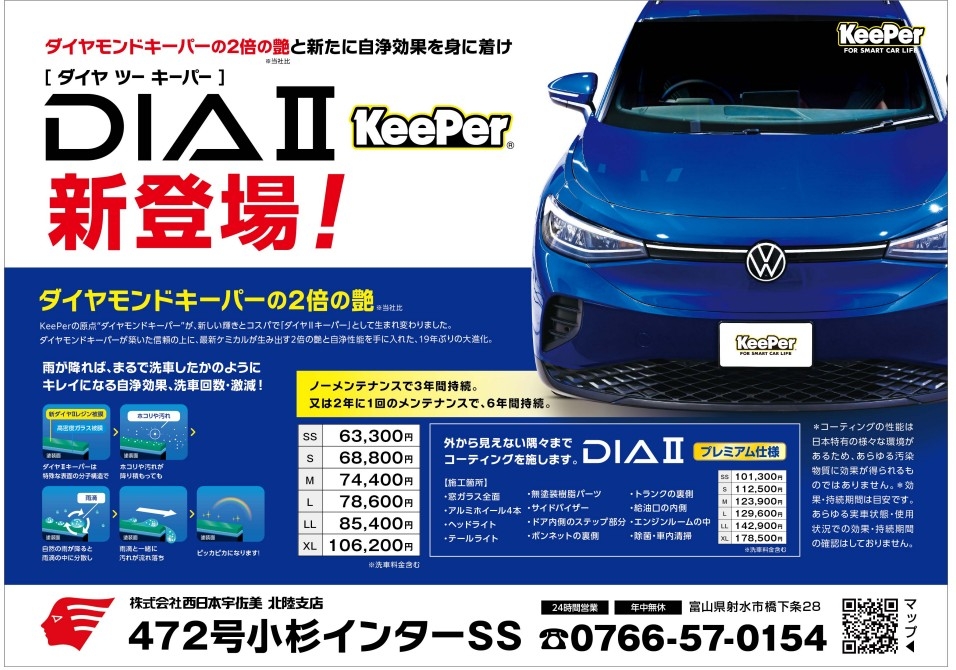 ・ご来店の際は店舗正面に駐車して頂き、店内受付スタッフの方にお声をおかけください。お電話の際は、「キーパーのページを見た」とお伝え頂くとスムーズです。