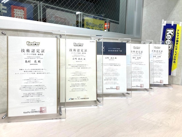 当店にはKeePer施工技術者1級が4名とEX1級資格者が1名在籍しております。どんなお車のキレイもお任せください。