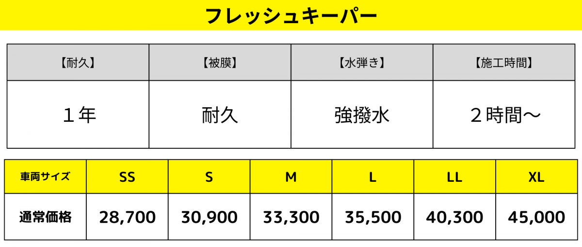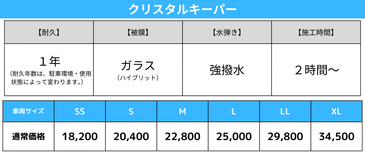 ツヤを深め、シミを防ぐレジン被膜と、強固に塗装を守り、透明感のツヤの高密度ガラス被膜の2層の被膜で外部からの攻撃を受け止め、塗装を守ります。