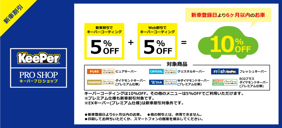 新車割(新車登録日より6ヵ月以内のお車) 5%OFF