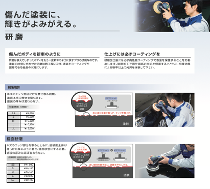 古くなった塗装を整え、本来の輝きを取り戻す研磨。