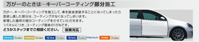 全社損害保険対応 自然災害、事故などで板金塗装をされた際、保険会社に提示して頂くと保険対応にて補修コーティングが出来ます。