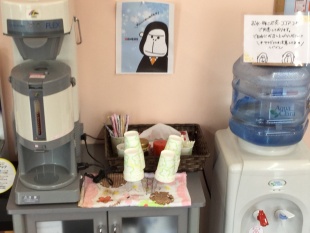 コーヒー、ココア、梅昆布茶、ミネラルウオーターなどお待ちの間お好きなものをご自由にお召し上がりください。