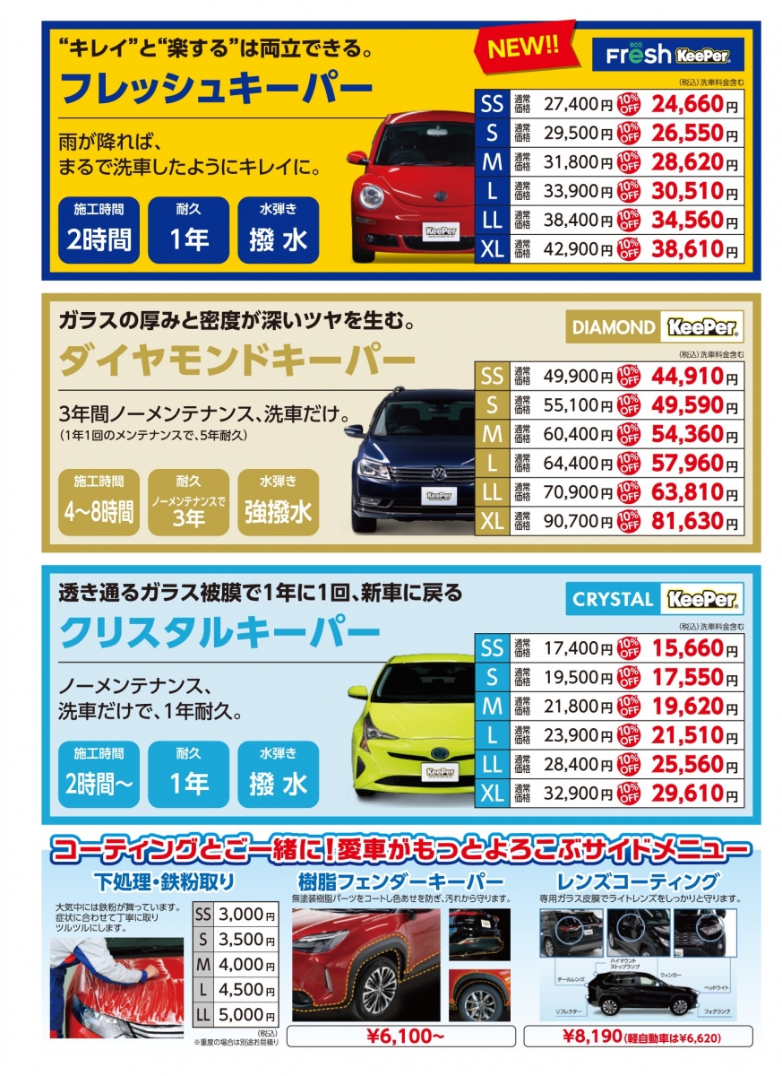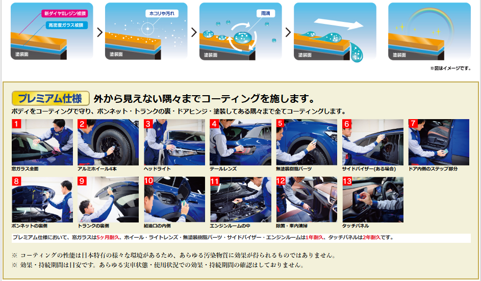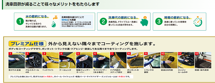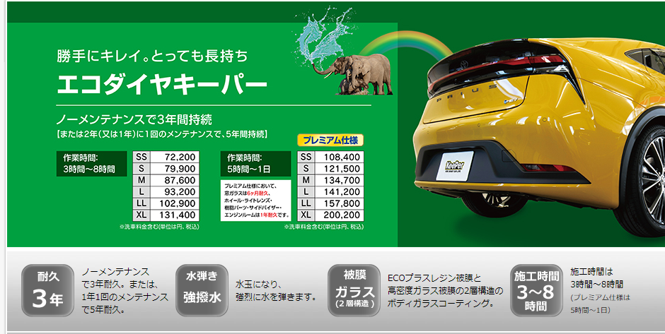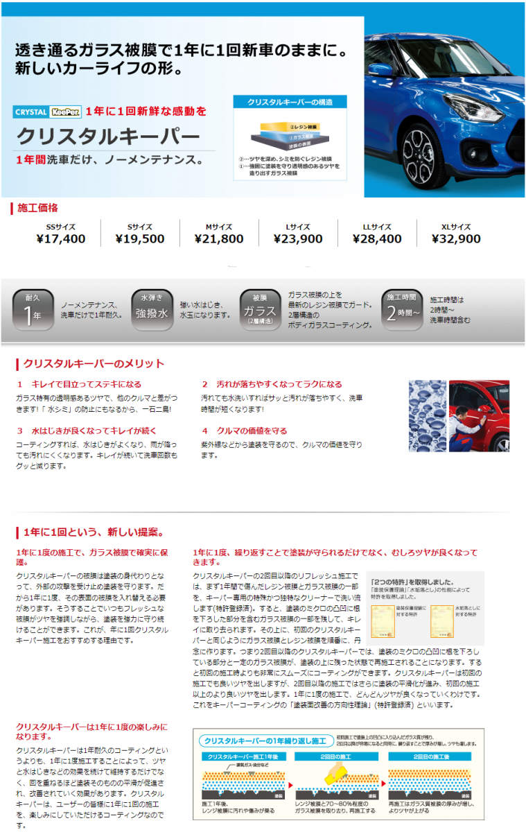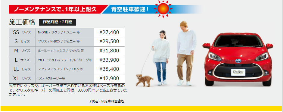 お待ちの間に完成する、ベストセラーのポリマーコーティング。 3ヶ月に一度、洗車とご一緒にくり返し施工すると、 塗装のキレイがどんどん増していき、被膜が強くなっていきます。
