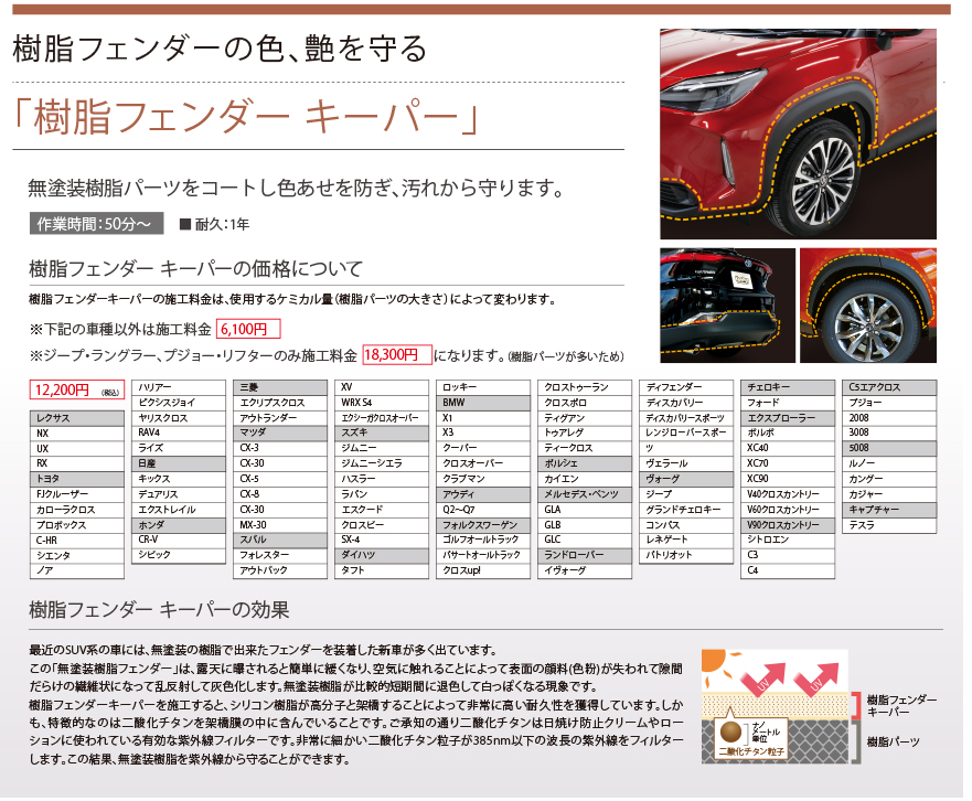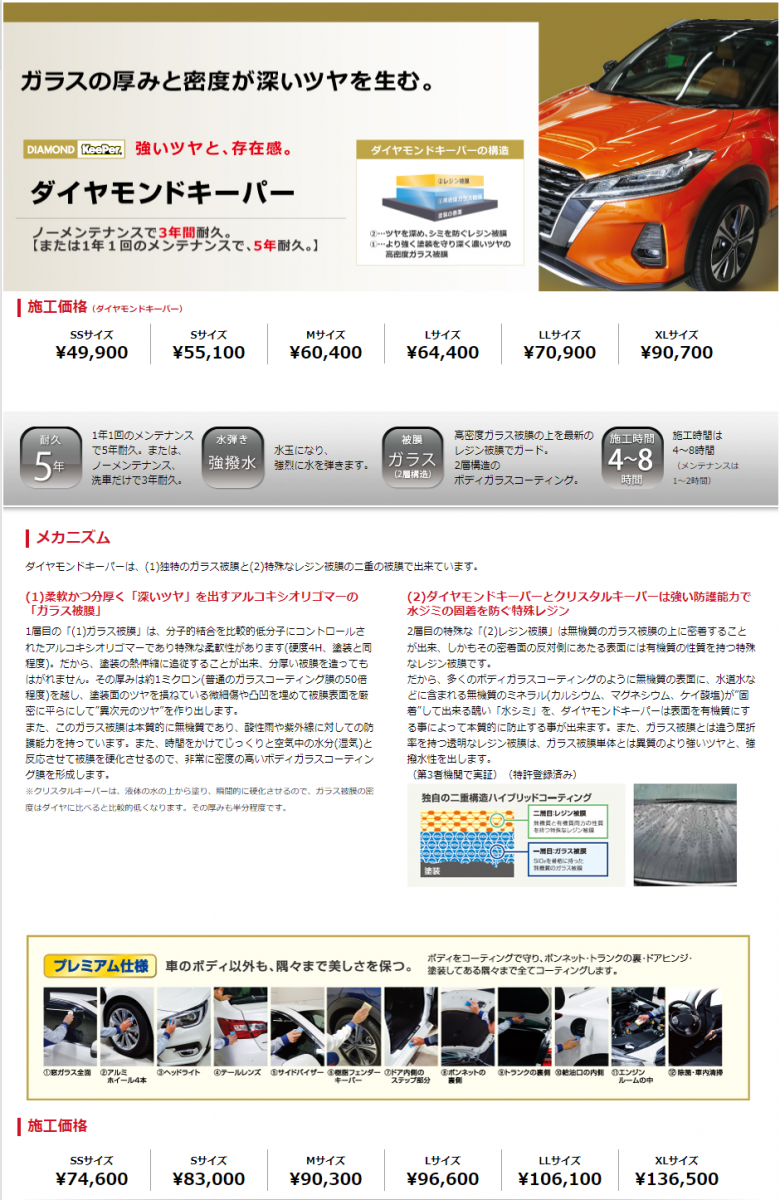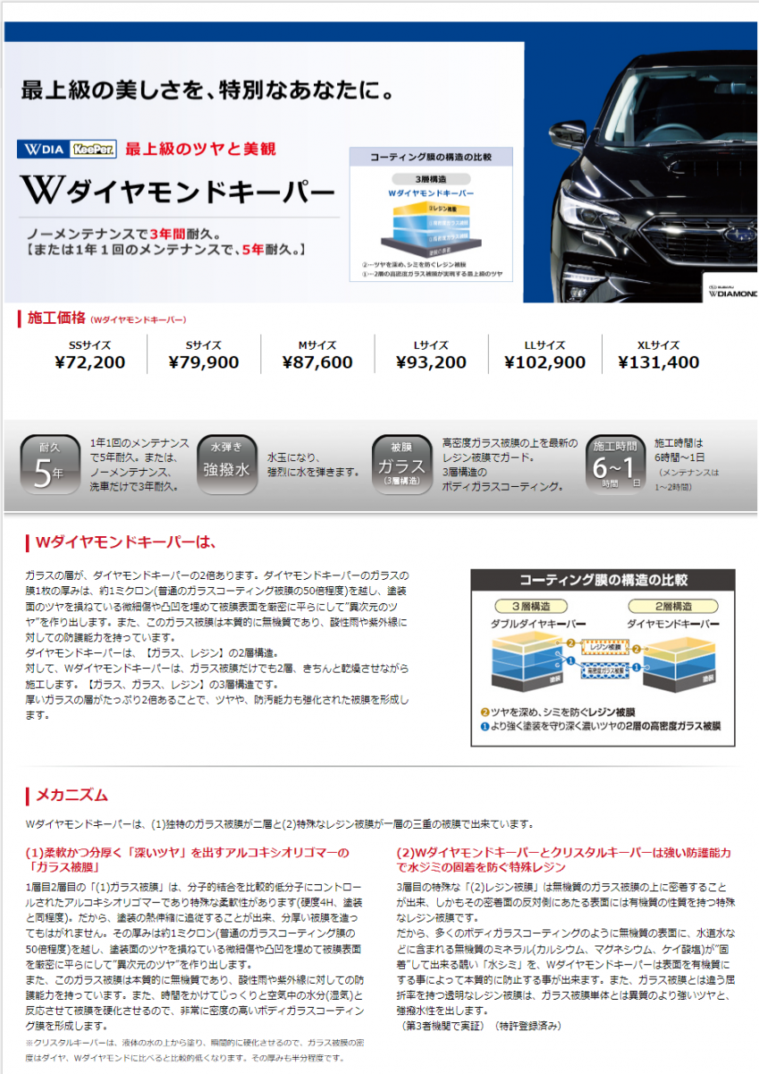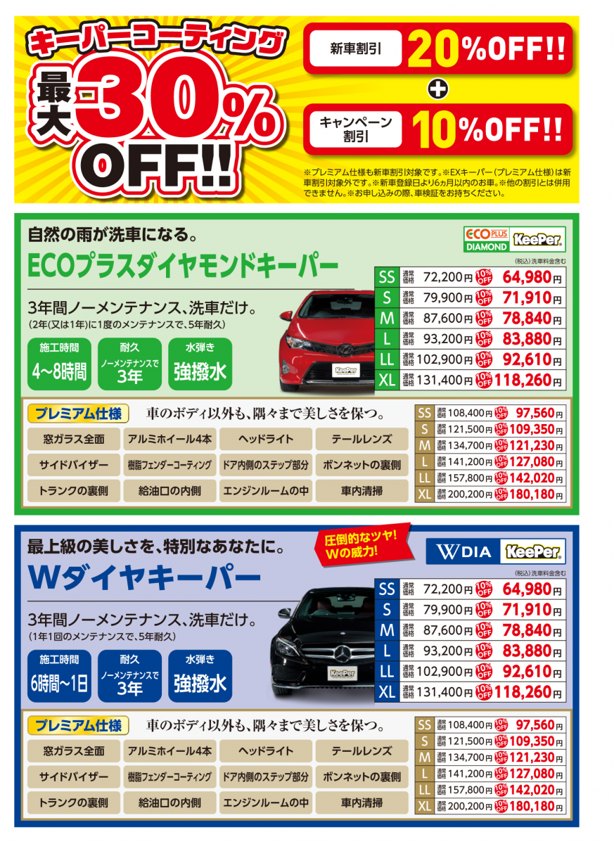 お待ちの間に完成する、ベストセラーのポリマーコーティング。 3ヶ月に一度、洗車とご一緒にくり返し施工すると、 塗装のキレイがどんどん増していき、被膜が強くなっていきます。