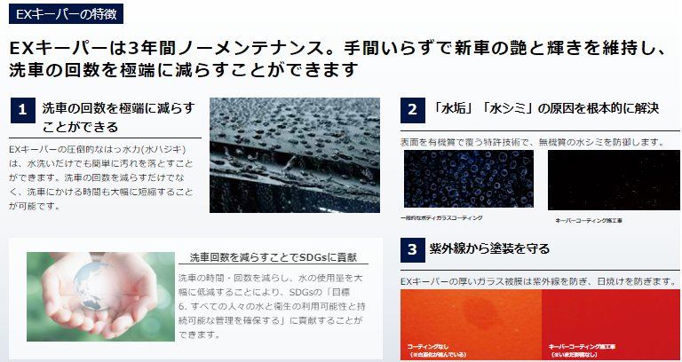 今のコーティングをそのままに、かけたばかりの時のあの美しさに戻します。 KeePerが新発明した「コーティングの被膜を一切削らず、ミネラル膜だけをそっとキレイにかき取る」技術。