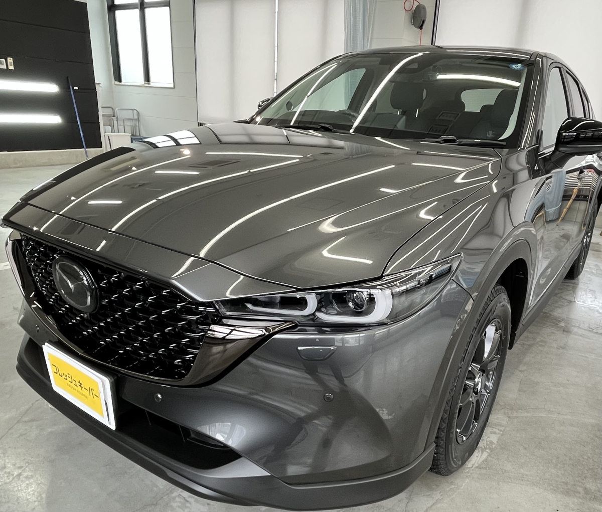キーパーの分厚いコーティング被膜は、新車に施工してもより艶が出ると好評です。