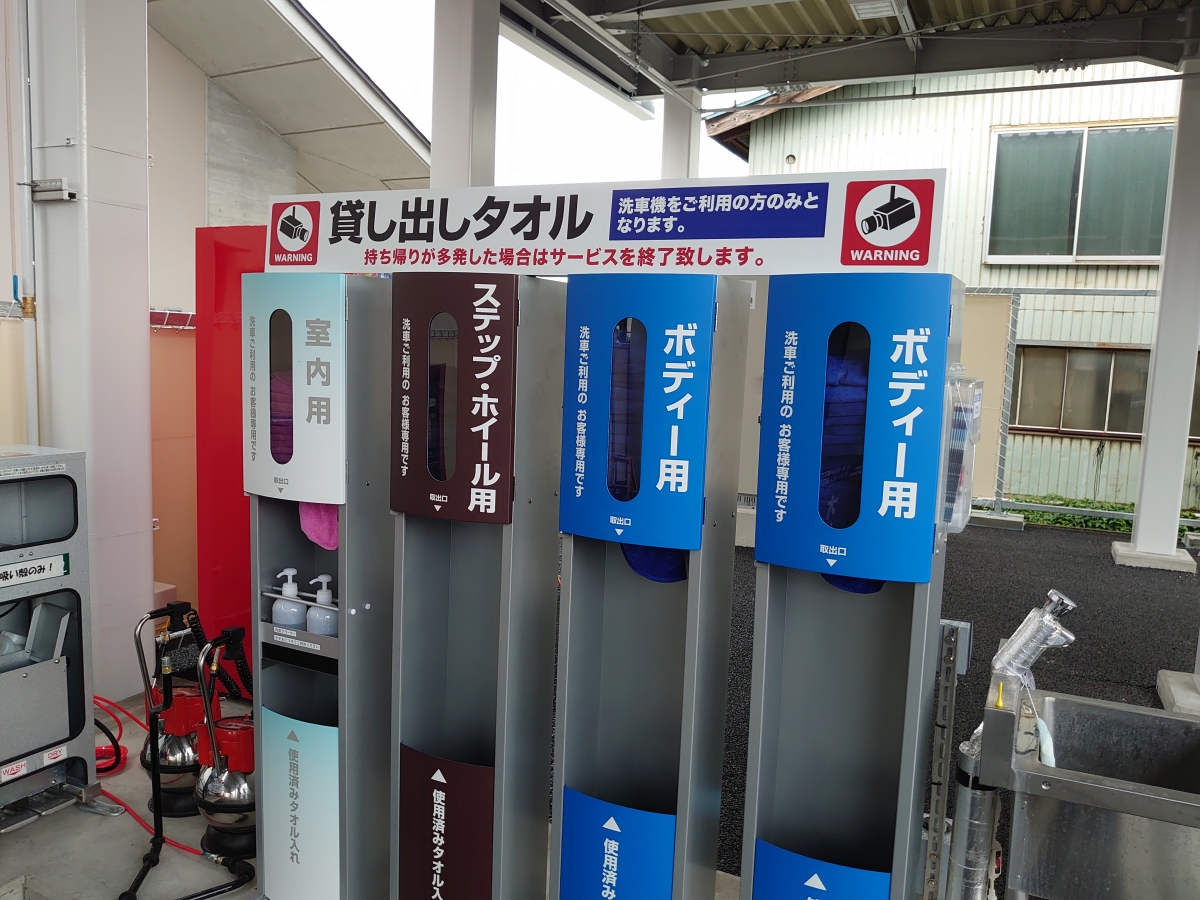 スプレー洗車用のスポンジ等の貸し出し、洗車後の拭き上げ用タオルの貸し出しも無料ですので、手ぶらでご来店頂いてもOKです!