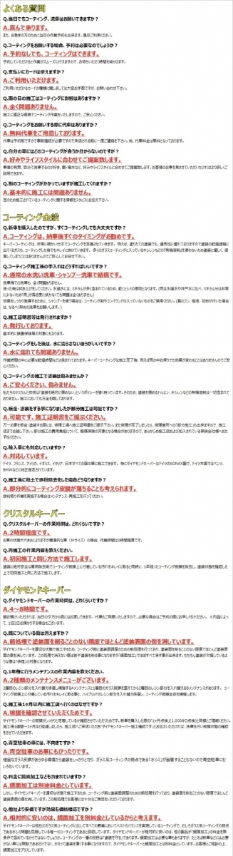しかもご自身のお好きなお手入れの方法で問題ありません。洗車機の使用もOKです。 コーティング後は汚れが付きにくくなり、大変楽にお手入れ可能です。