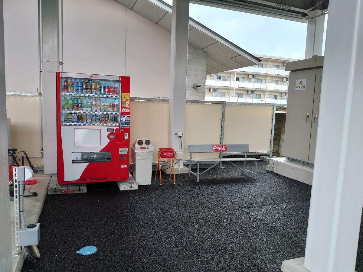 セルフ拭き上げ場の角に、自動販売機がございます。ご休憩はこちらをご利用下さい。