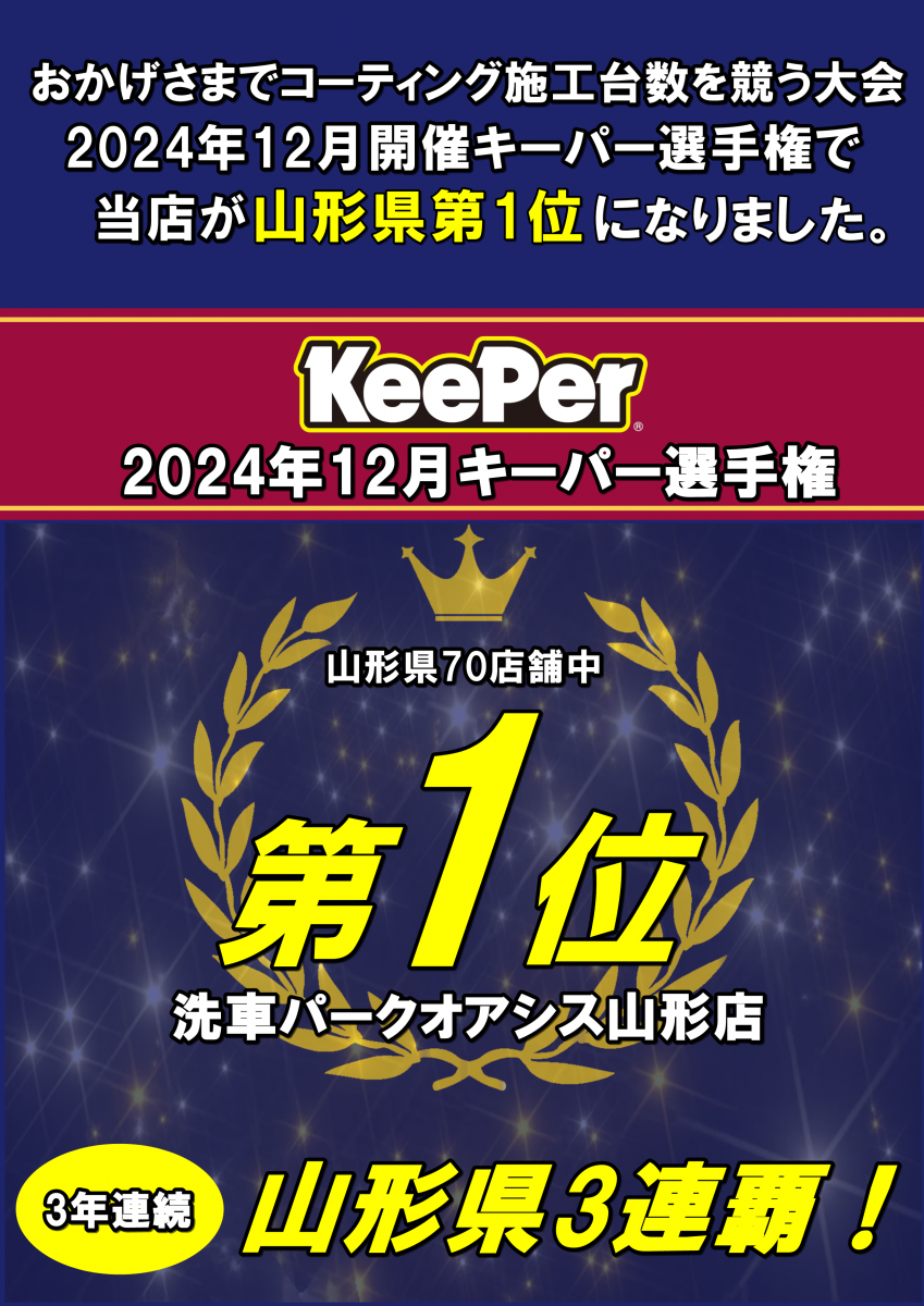 こんにちは!洗車パークオアシス山形店です。年末が近づき何かと忙しくなり、体調も崩しやすくなるこの時期皆様におかれましてもぜしご自愛ください。さて、この度の新たにダイヤ2キーパーが新商品として登場致しま...