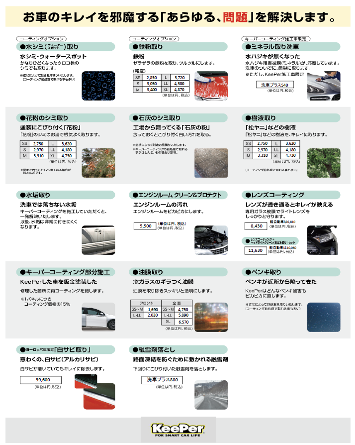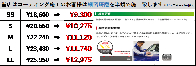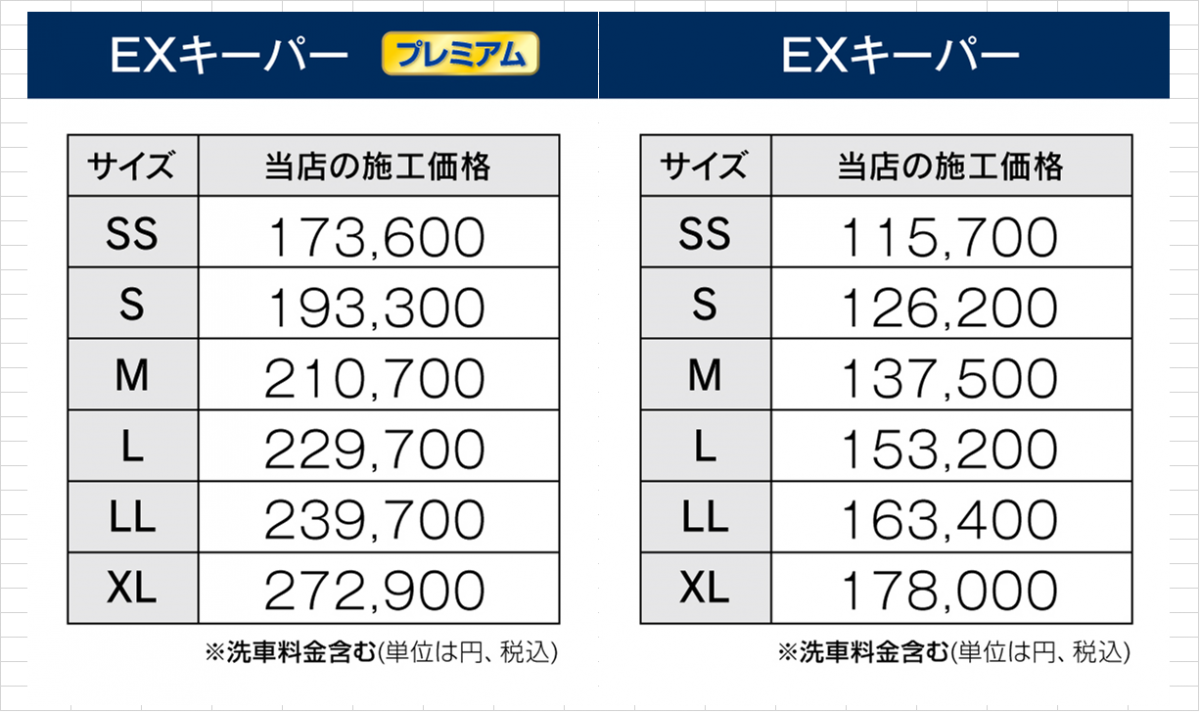 ※最上級の「EXキーパー」は、「コーティング専用ブース」と、「コーティング技術EX1級資格」を取得しないと、取扱施工店として認められていない高品質なコーティングになっておりますので、是非当店にお任せください。