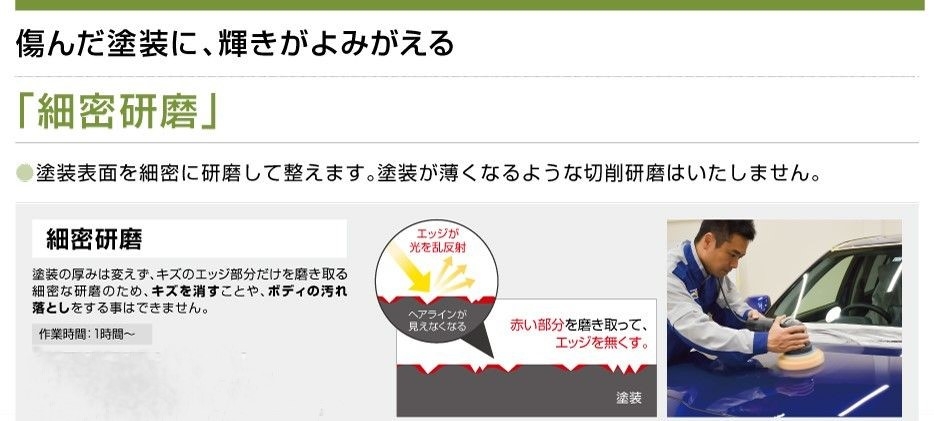 代表1名での営業ということもございますが、当店はコーティング専門店ですので、特にコーティング前処理作業を細かい所まで意識して作業致しております。
