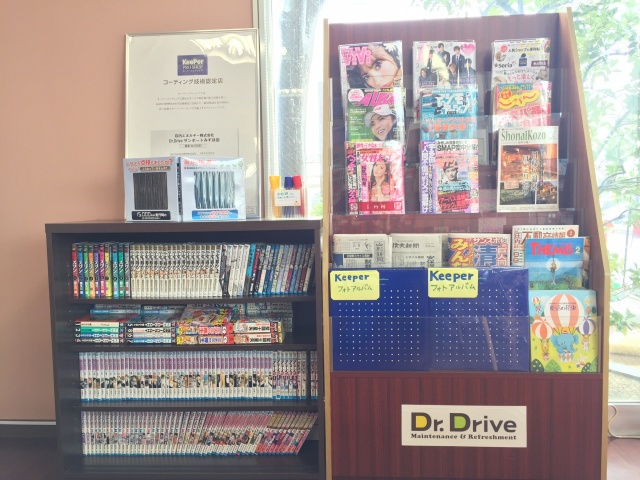 こちらが雑誌・漫画本コーナーになります。新聞もありますので、店内でお待ちになられる間にご覧ください♪