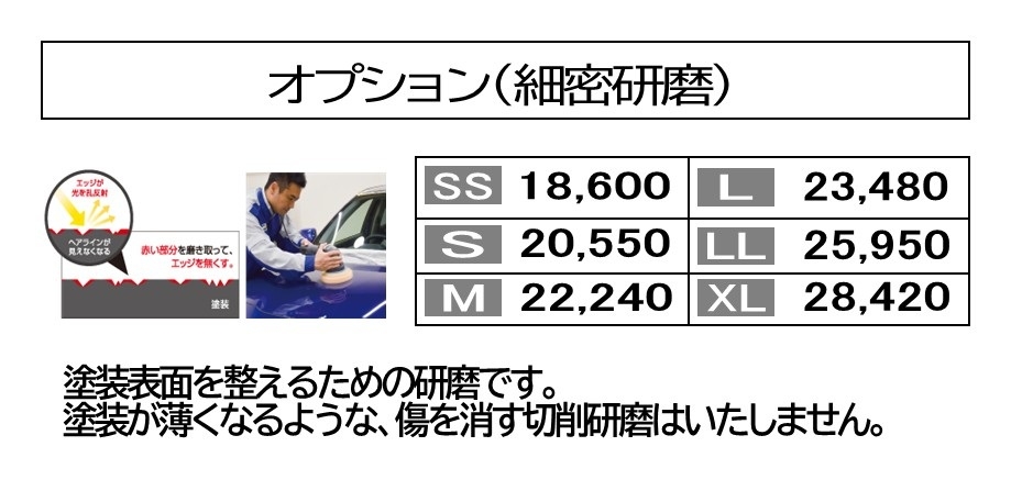 【A3】ご安心ください、傷みません。 私たちは「塗装を絶対に傷めない」というポリシーを強く持っています。そのため、塗装を傷めるトルエン、キシレンなどの有機溶剤は一切含まれておりません。施工においても万全を期しております。