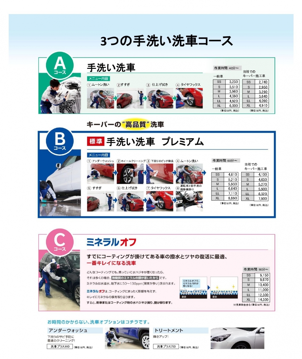 【A6】コーティングを施工した車は、基本的に汚れが付きにくくなっていますので、面倒なお手入れの必要はありませんが、コーティング施工後に、簡単なお手入れ方法について、ご説明させて頂きます。 詳細は店舗までお問合せください。