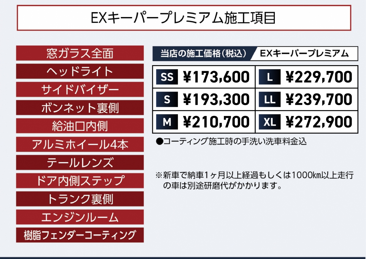 ⭐︎手洗い洗車サイズ毎価格⭐︎