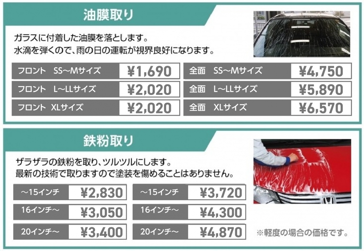 ※プラス手洗い洗車代金付加です。 他にもご希望がございましたら