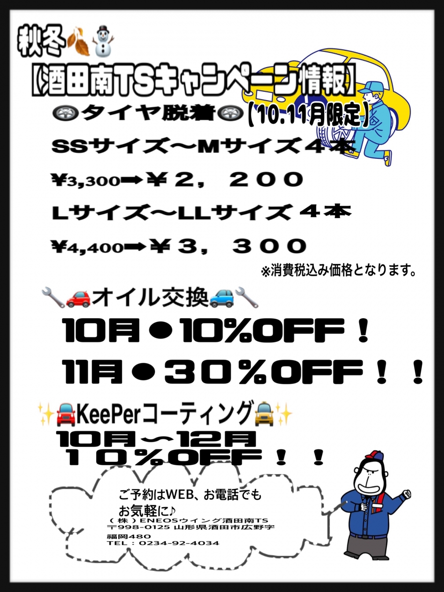 こんばんは🌟11月に入りました!酒田南TS齋藤です☺️今日は朝からしっかりと雨模様☔️ 気温も下がり、いよいよ冬の足音が近づいてきましたね❄️ そんな中でもたくさんのお客様にご来店いただき、 ...