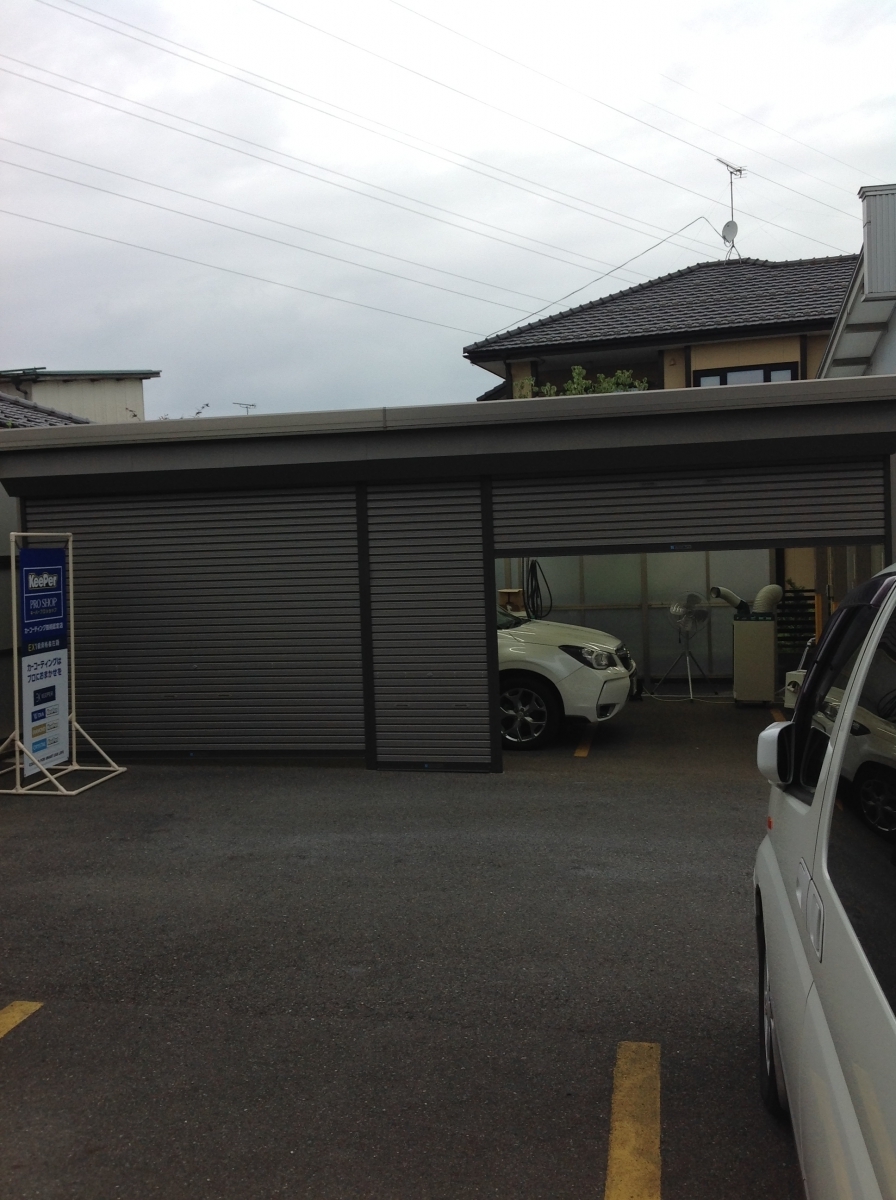 当社の「コーティングブース」は、シャッターを閉めると密閉空間になるよう、「すべて加工してあります」