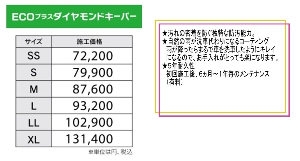 「ダイヤモンドキーパーの艶と撥水」+「自浄性能」を備えた「ECOプラスダイヤモンドキーパー」!!