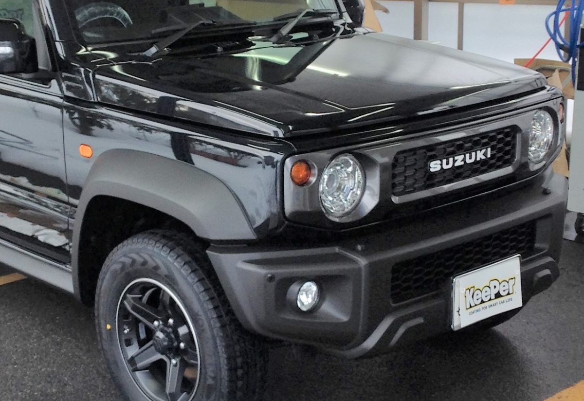 新車のジムニーシエラですが、樹脂フェンダーキーパーをクリスタルキーパーと一緒に施工させて頂きました。