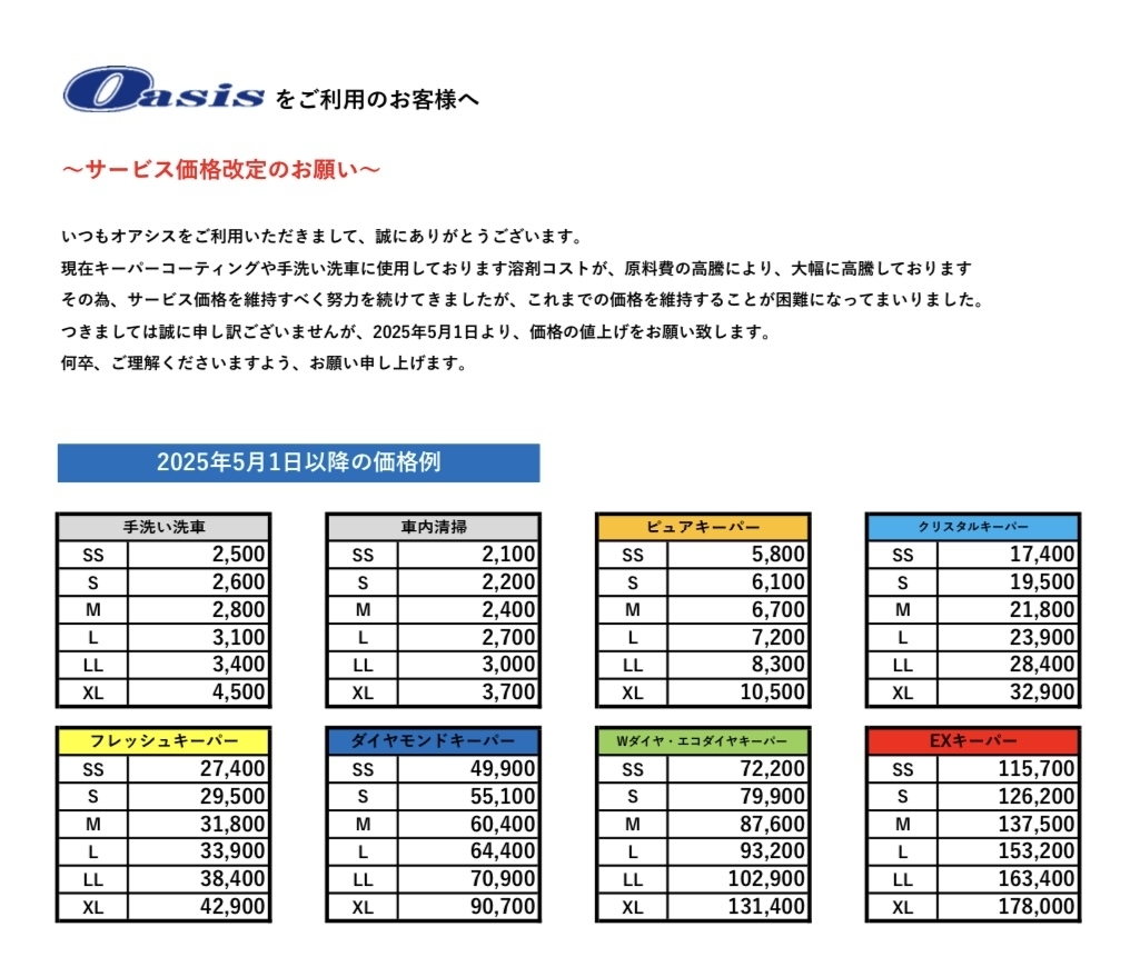 (※洗車,キャンペーン割引との併用はできません。)
