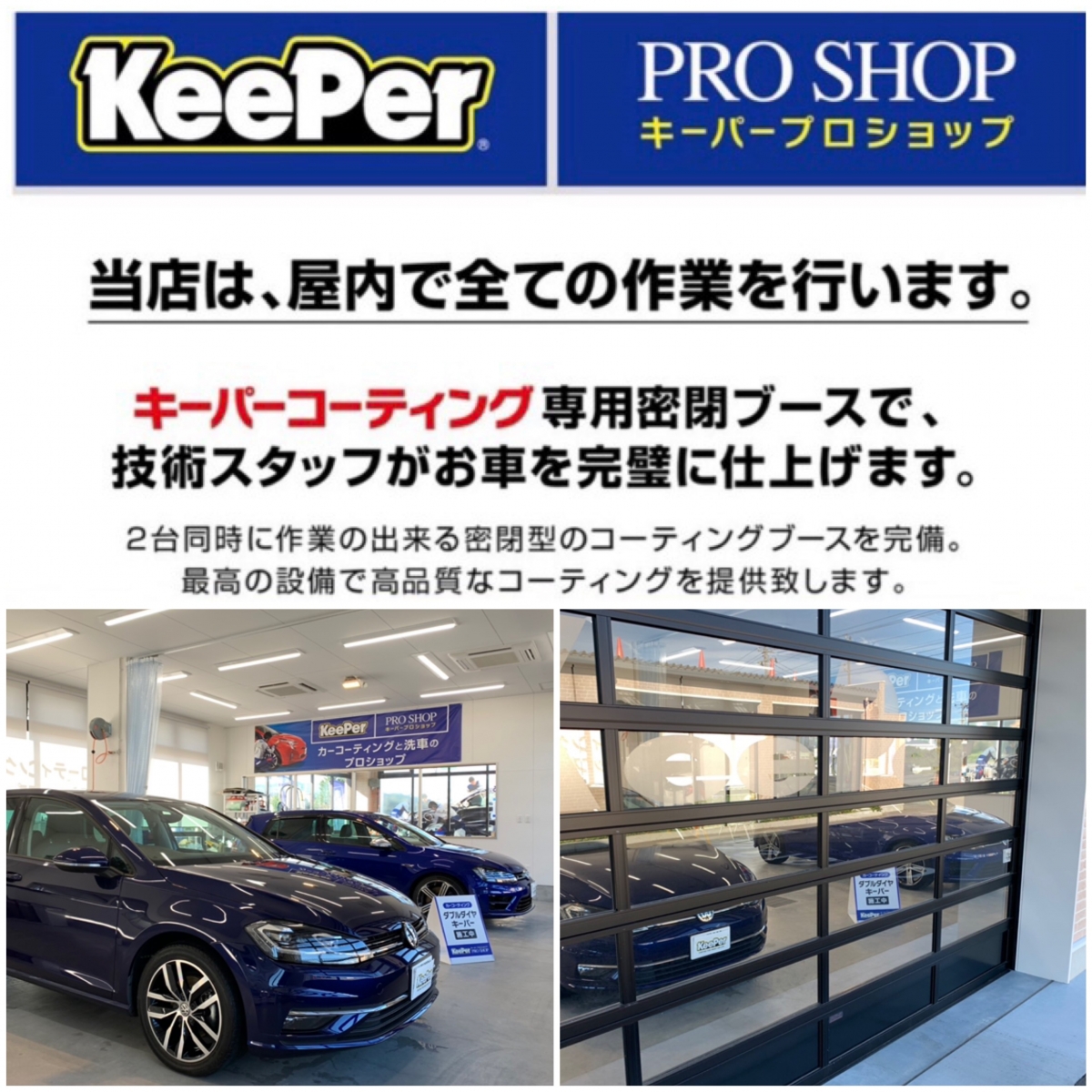 屋内ブースでのコーティング施工で品質、仕上がり共に最上級をお約束👌