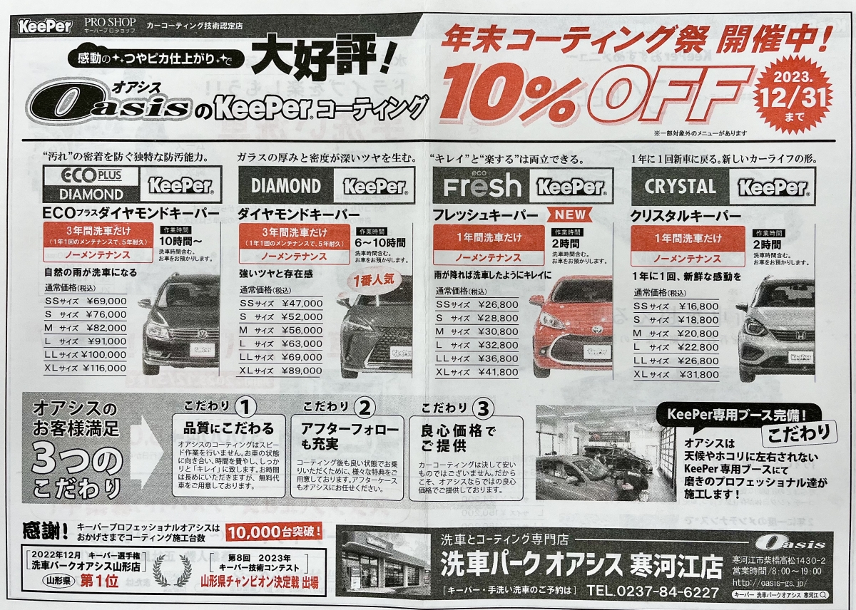 2025年12月末までのご予約でコーティングメニューが10%OFFに😊 *EXキーパーは対象外とします*