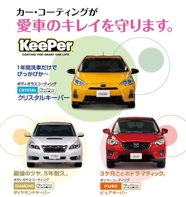 3か月に1回ぐらいを目安に繰り返し施工するコーティングです。それくらいの短いスパンでまたコーティングに持って行くのが面倒だよ!という方には1年間ノーワックス・ノーメンテナンスのクリスタルキーパーやノーメンテナンスで3年、メンテナンスをすれば5年耐久のダイヤモンドキーパーといったガラス系コーティングがおすすめです。