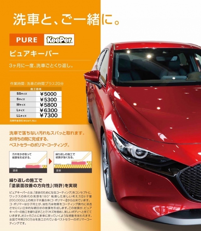 愛車の価値を守るキーパーコーティング、ぜひ当店にお任せ下さい。
