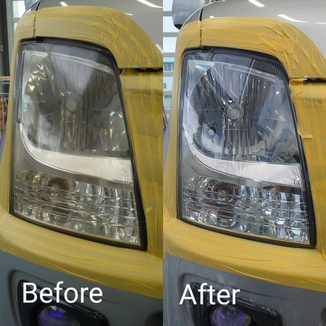 黄ばみ・くすみを除去しコーティングします。 お車の顔立ちもスッキリし、更に美観が引き立ちます! ライト使用時の光の拡散も抑えられ、夜のドライブにもバッチリです('ω'*)