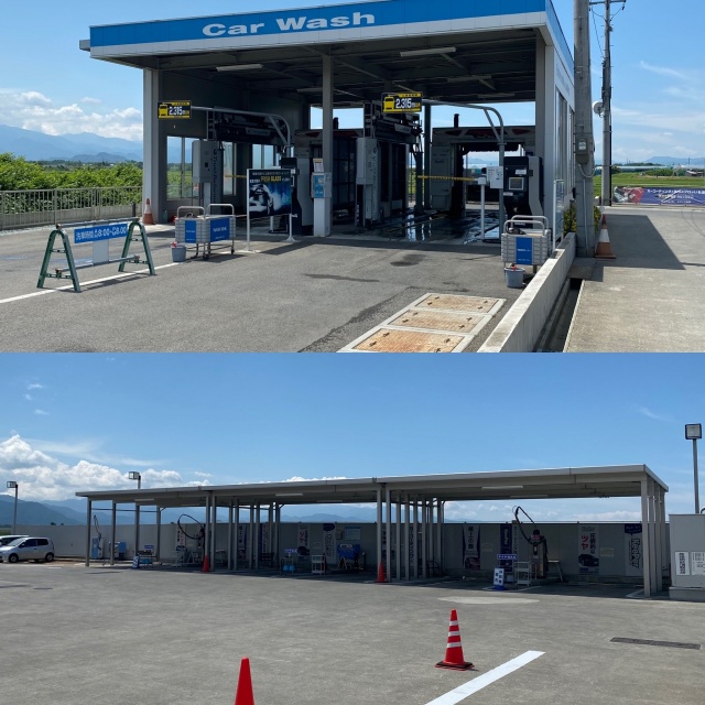 また当店ではスポンジブラシ洗車機が2台あり、洗車後はカーポート付きの拭き上げ場で日差しを気にすることなく拭き上げができます。