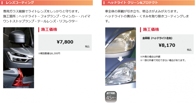 他にも愛車をキレイにするオプションメニューがまだまだ揃ってるんです!!