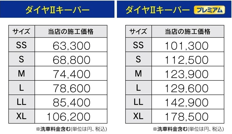 | 当店ではお客様のお車のサイズに応じて施工料金が変わります。 |