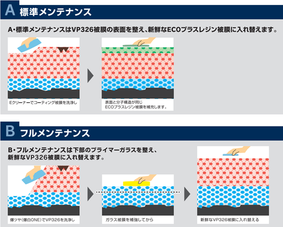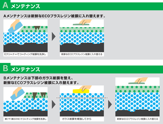 下部のガラス被膜を整え、表面のECOプラスレジン被膜を入れ替えます。