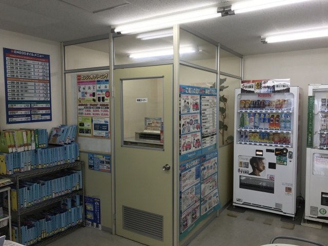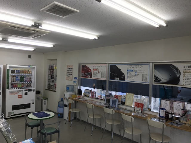スマホ充電器完備・無料ドリンクありで、カウンターBOX席とゆっくり洗車・コーティング施工をお待ちいただけます。