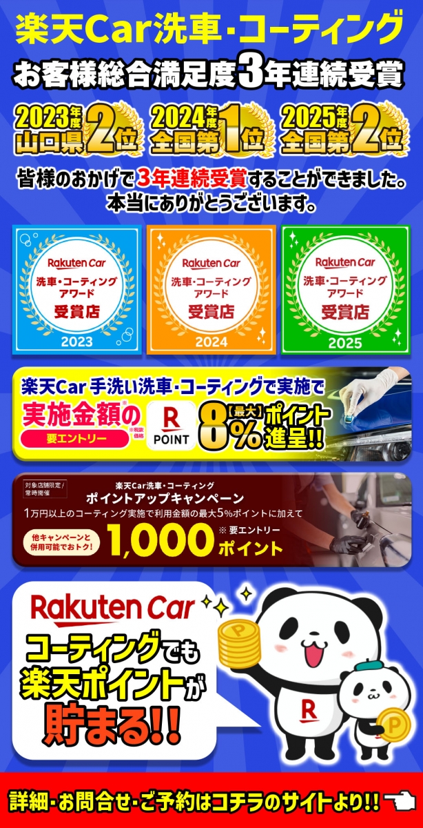☆手洗い洗車・コーティングの実質金額から8%の楽天ポイント付与☆