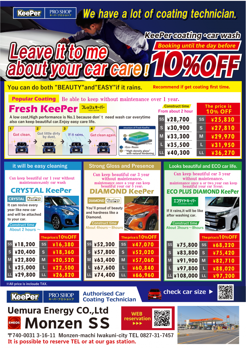 - 車に優しい極上の手洗いと、こだわりの艶キーパーコーティングの提供で洗いと磨きの実績を築いてきました。