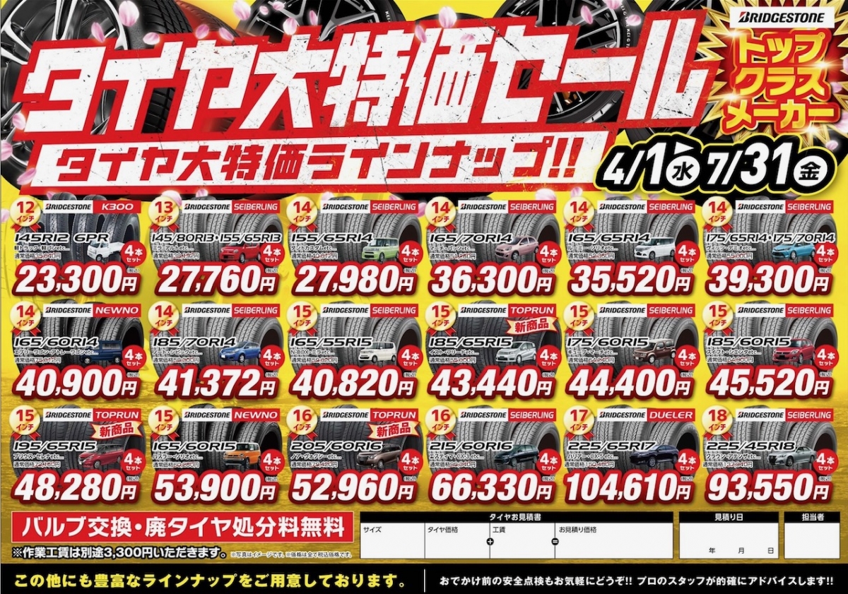 🚗💥 タイヤ大特価セール開催中!!