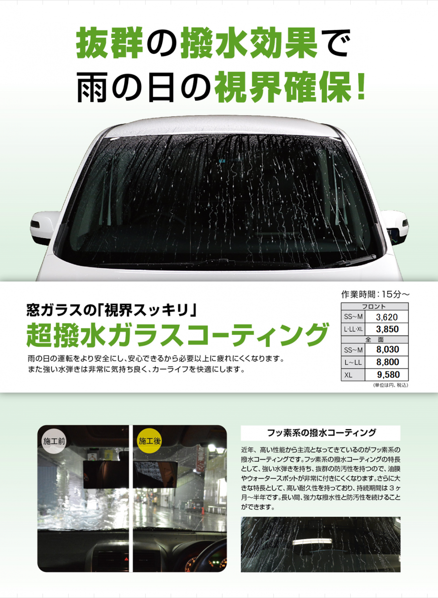 ・ガラス特有の透明感の艶で、他の車と差がつく