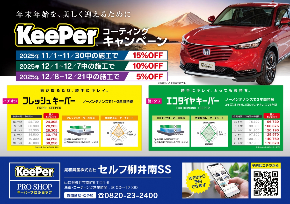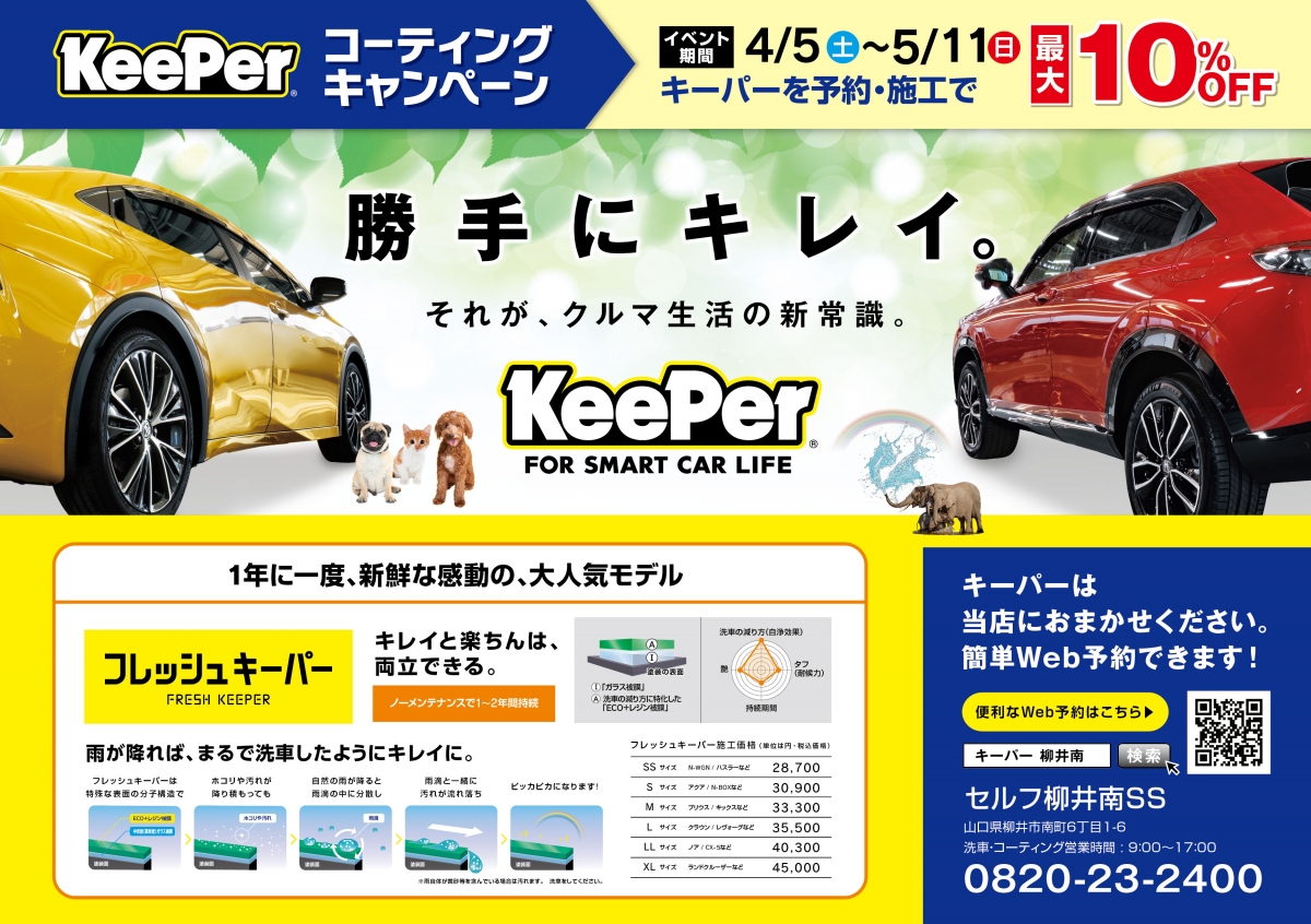 セルフのスタンドではございますが、この度よりKeePerPROSHOPとして洗車・コーティングのできるお店としてReスタートします。