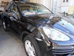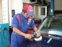 まず、ダイヤモンドキーパーは鉄粉・水あか取り後、ポリッシャーで塗装面を丹念に研磨します。(写真は研磨中です)その後再度洗ってからガラスコーティングを施工します。キチンとした被膜を形成するために3時間以上乾燥させてレジン被膜を施工して完了です。5年耐久(年1回のメンテ要)、超はっ水性のハイブリッドガラスコーティングです。