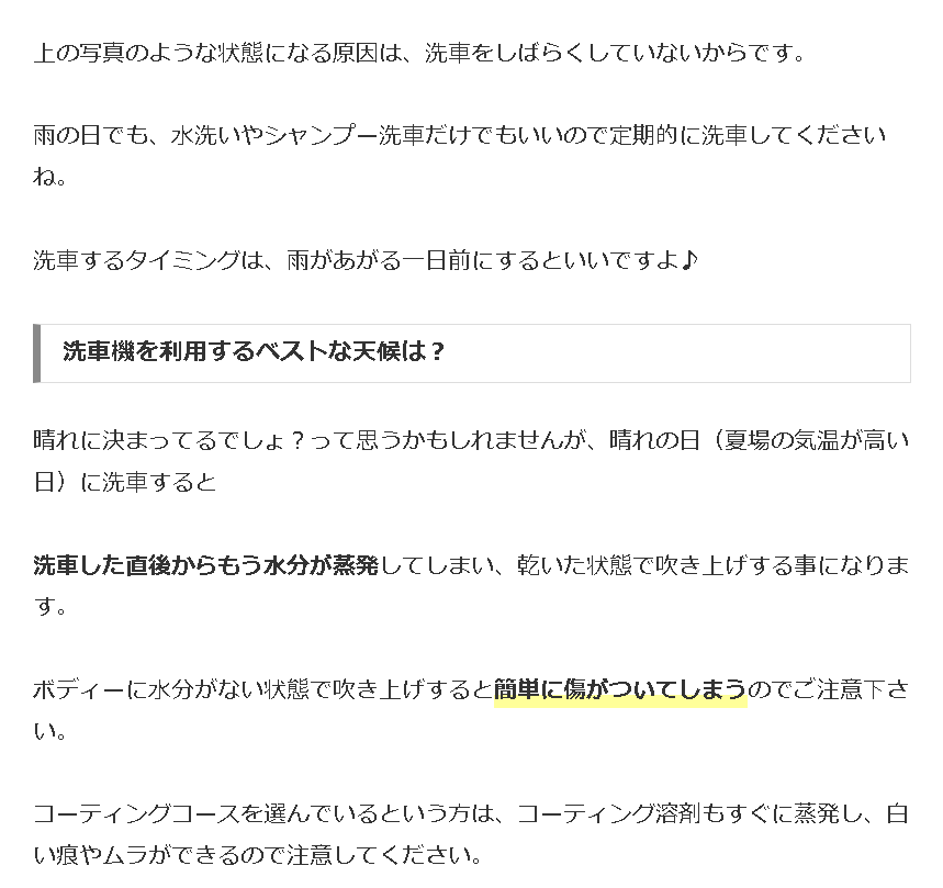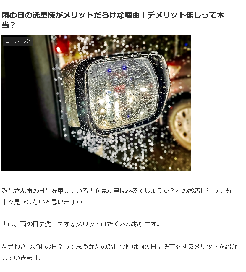 またはさっと洗うだけでもコーティング施行車は綺麗になります。