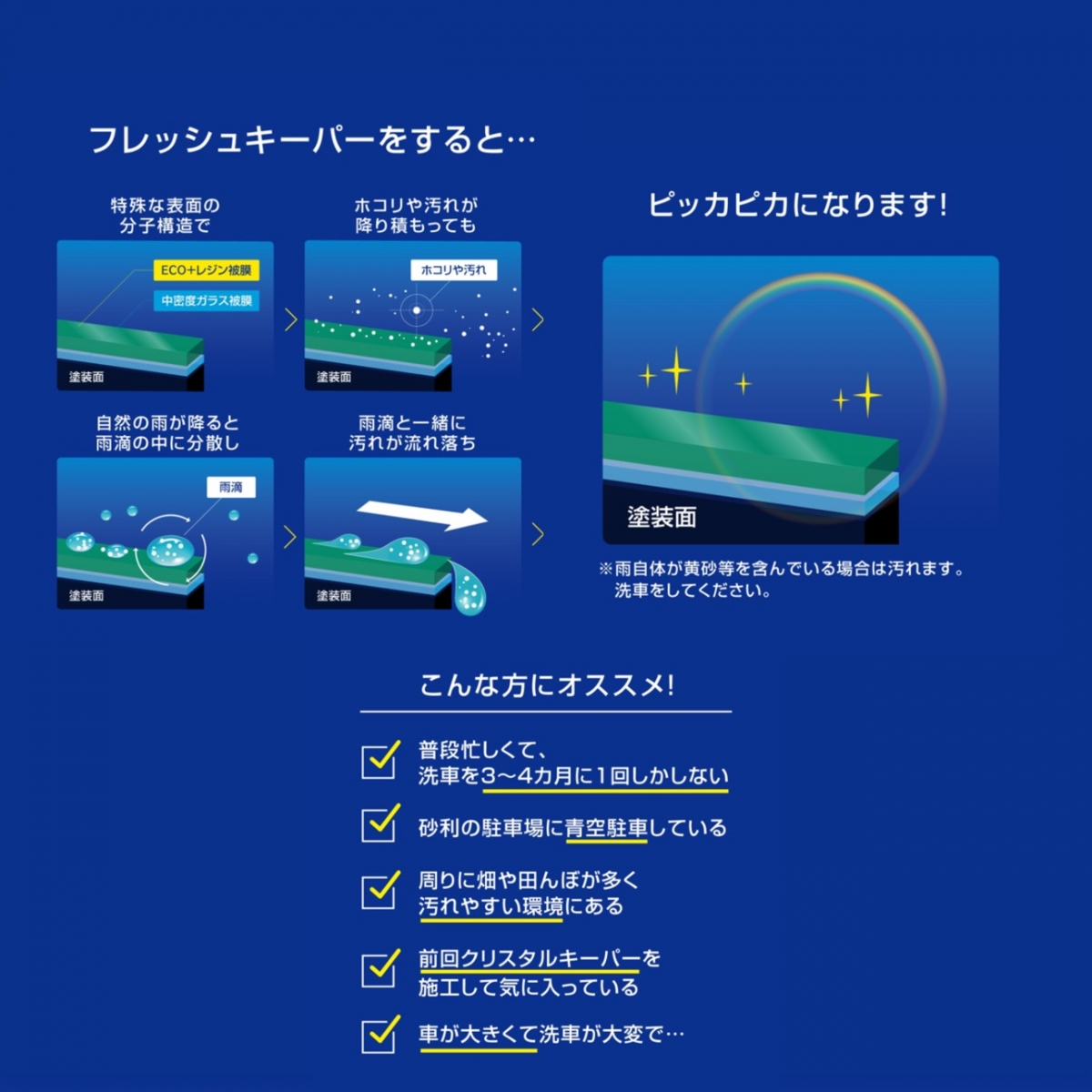 新車時またはコーティング時の艶・水弾きが蘇る新感覚の手洗い洗車となっております。