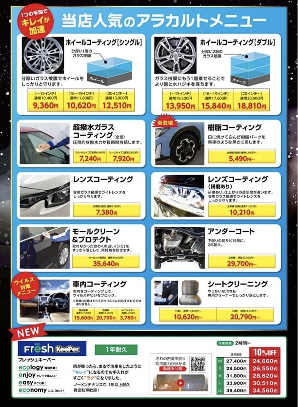当店のHPをご覧いただきありがとうございます。 店長の鈴木と申します。 当店はお車をキレイにするための多彩なメニューをご用意しております。お客様のご要望に沿ったプランで愛車の“キレイ”をご提供させていただいております。