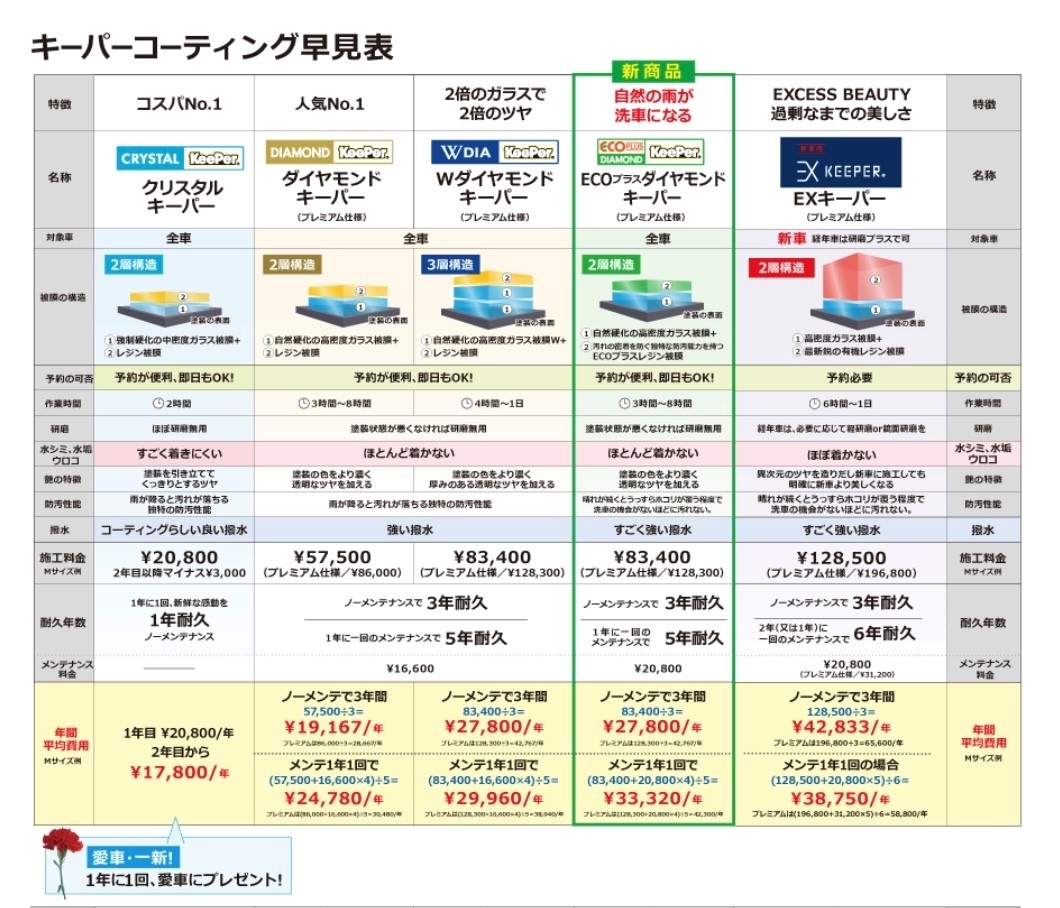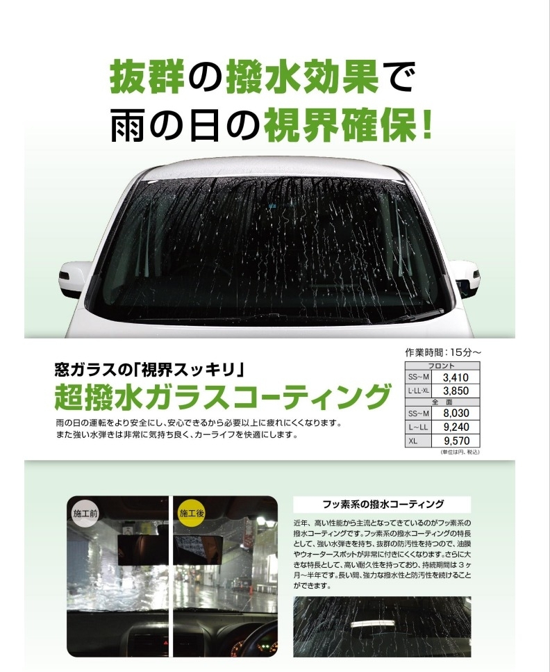 ・耐久期間 1年間ノーメンテナンス。洗車だけでキレイが続く。