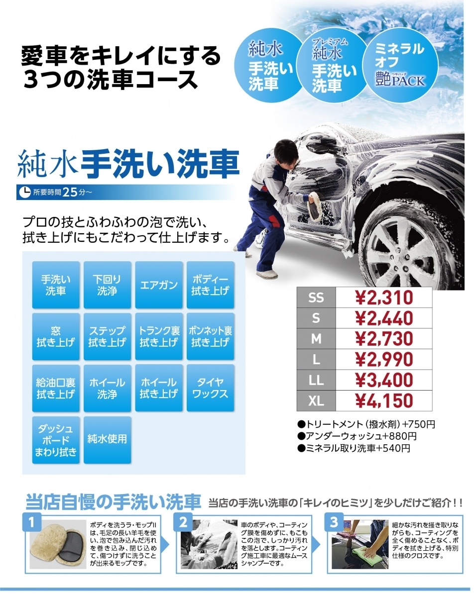洗車・コーティングは店内でお伺いいたします。 なんでもご相談ください。